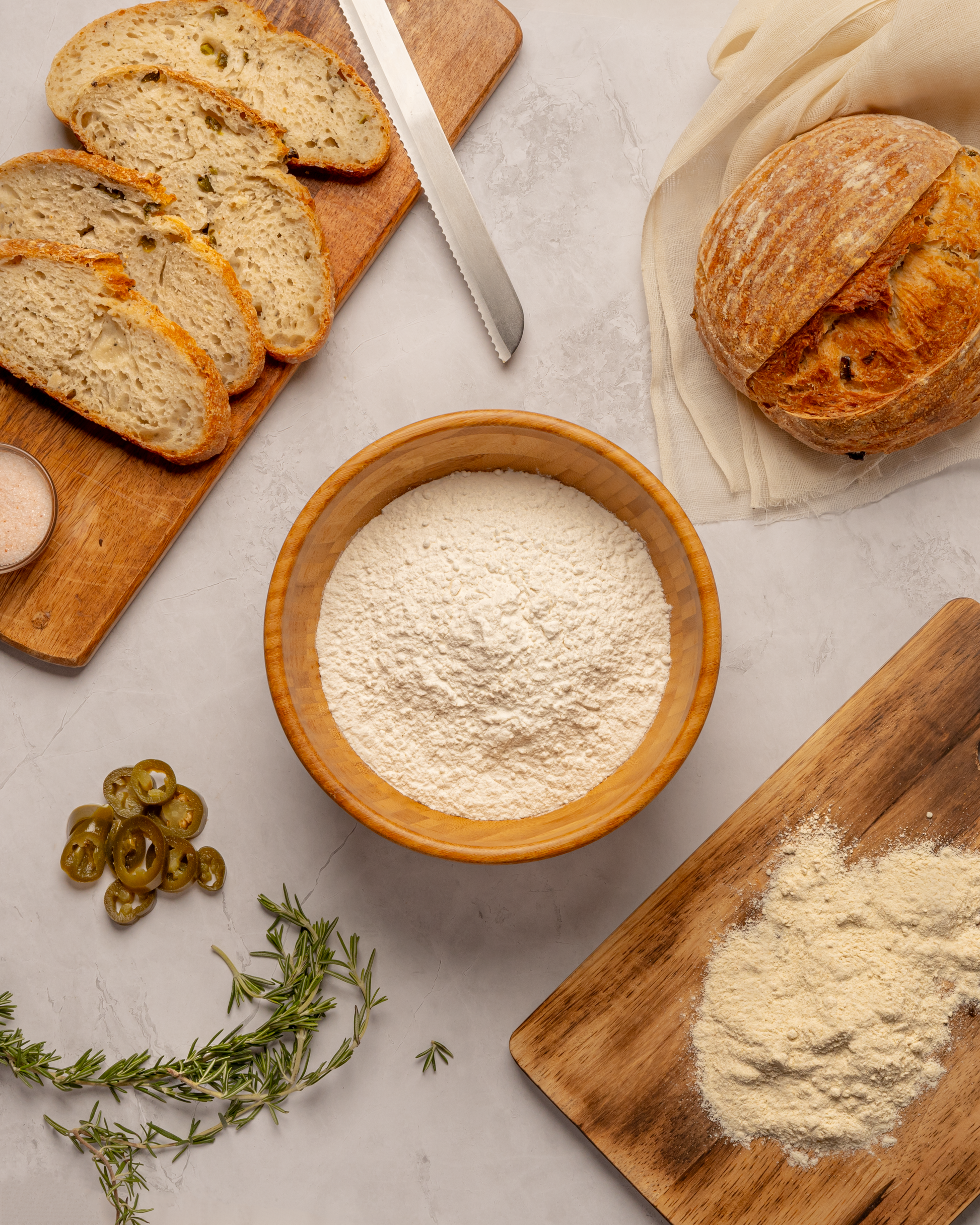Savor the zesty kick of jalapeño and aromatic rosemary in our artisanal Sourdough Bread. A flavorful delight in every bite!