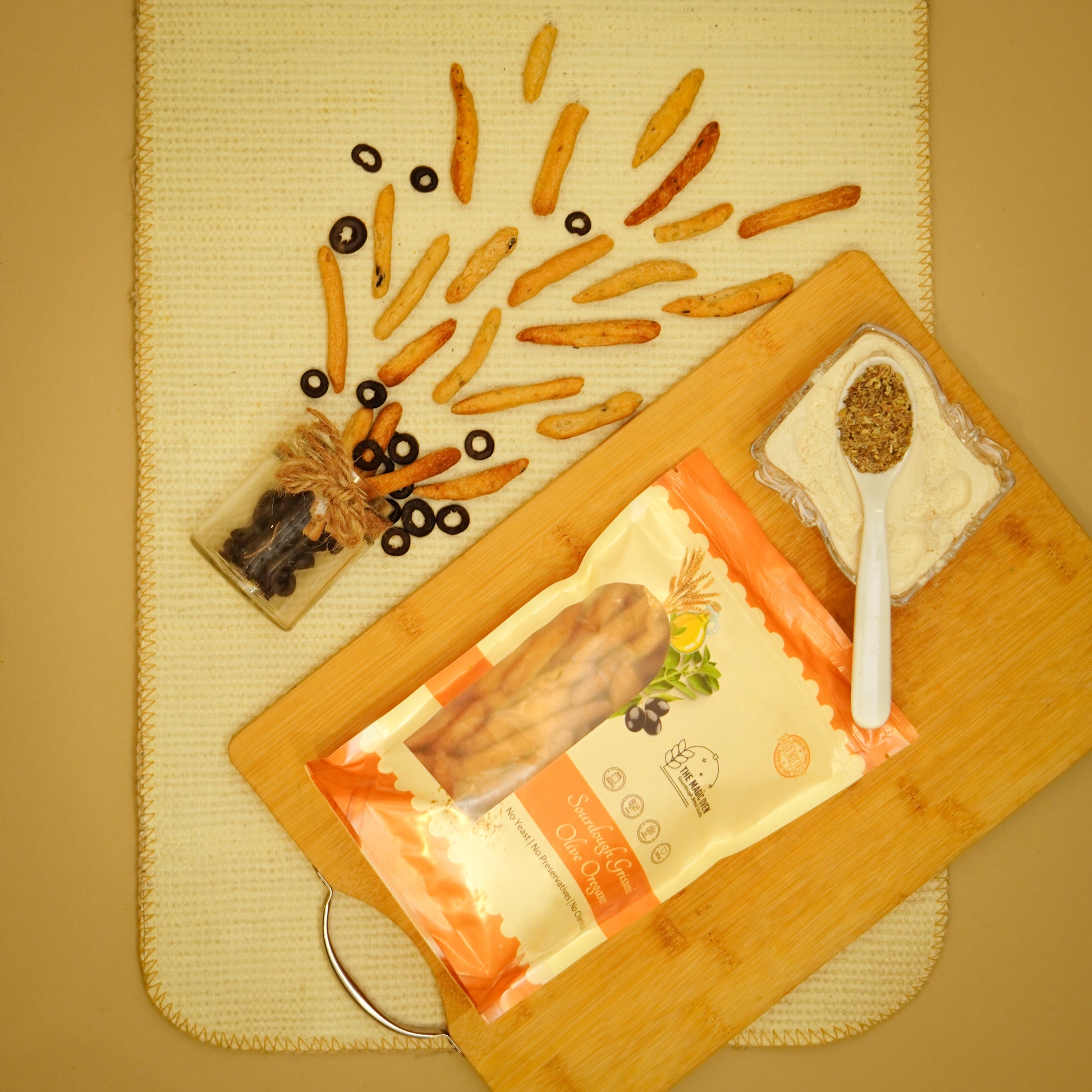 Our grissini sticks begin with the time-honored tradition of sourdough fermentation, resulting in a light and airy texture that's as pleasing to the palate as it is nutritious. The tangy complexity of sourdough serves as the perfect canvas for the bold flavors of ripe olives and fragrant oregano, creating a symphony of taste sensations with every bite.